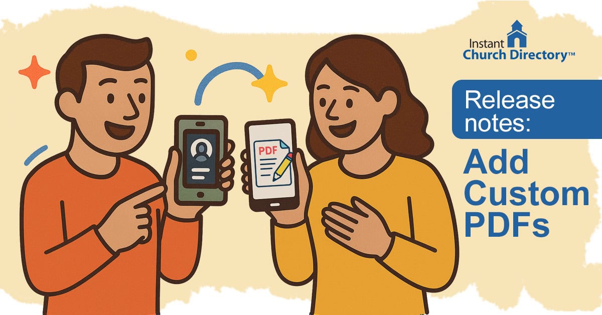 With Prompt Church Listing’s Customized PDFs, your church has safe methods to speak immediately with members. Now you may embed significant content material—tales, sources, updates, and inside paperwork—in the identical safe place the place members already go to search out each other.