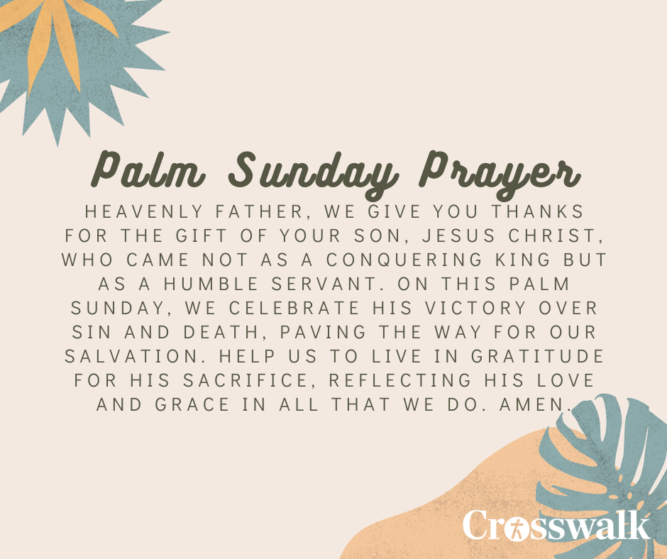 “Heavenly Father, we give You thanks for the present of Your Son, Jesus Christ, who got here not as a conquering king however as a humble servant. On this Palm Sunday, we have fun His victory over sin and demise, paving the way in which for our salvation. Assist us to stay in gratitude for His sacrifice, reflecting His love and charm in all that we do. Amen.”